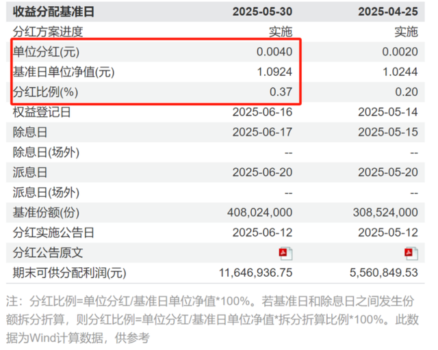 今天也发布了上市以来的第13次分红,每份将分红0.015元。过去五年,中证红利ETF年度分红比例分别为4.53%、4.14%、4.19%、4.78%、4.66%,领先了相当一部分纯红利ETF。