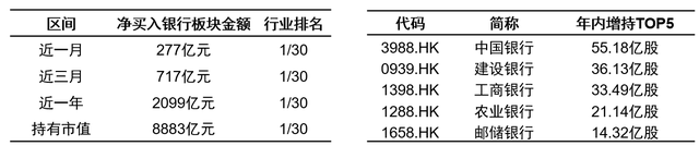 南向资金也长期偏爱高股息资产。截至五月底,近一月(+277亿元)、近三月(+717亿元)、近一年(+2099亿元)净买入额均位居30个中信(CS港股通)行业第一。截至5月末,南向资金合计持有银行AH指数成份股中的14只港股银行股6858亿元,年内累计增持174亿股,合计市值增超1820亿元。